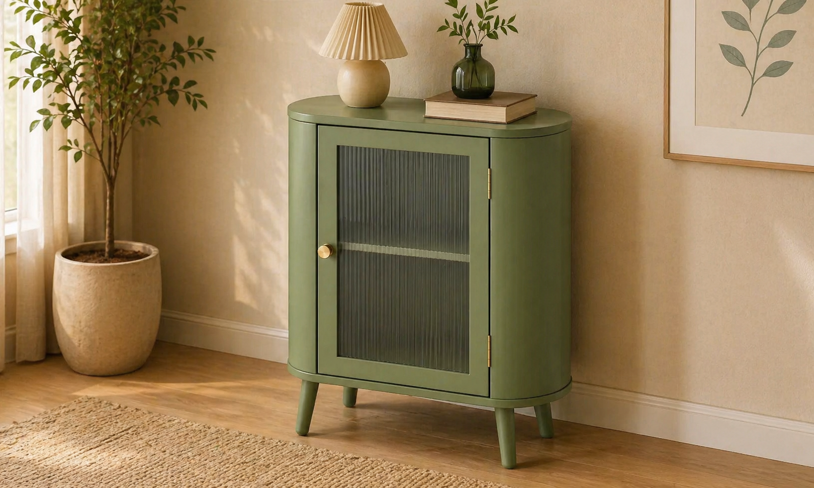 Armario de Dise?o Curvo con Puertas de Ratán Verde Oliva